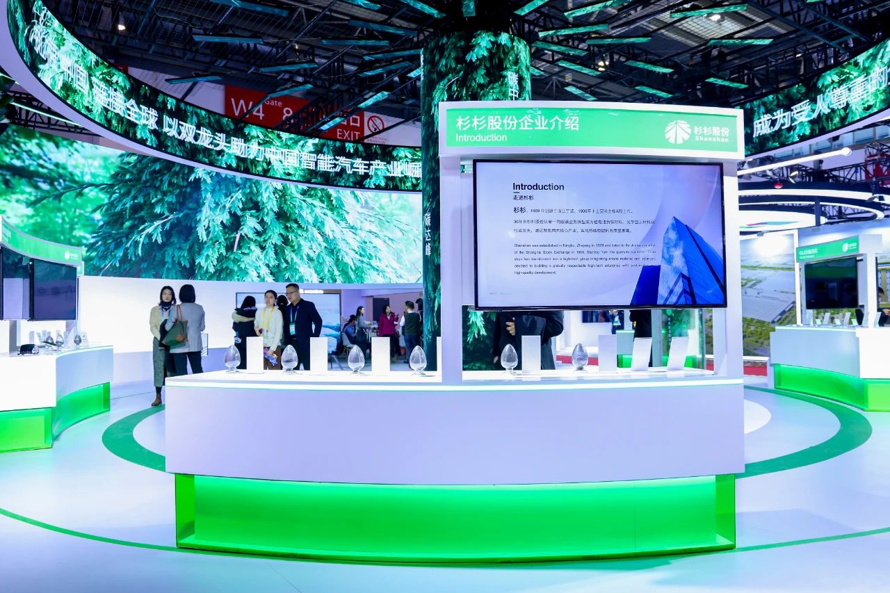 記者在展會現場看到,杉杉展臺運用環形屏、透明屏、115寸巨幕TV等新型顯示技術,展示了應用于最新一代高端電動車的4C快充負極、行業領先的硅基負極和硬碳負極產品,以及高端LCD、OLED、車載用偏光片等產尖端顯示產品。展會期間,杉杉還將舉辦多場鋰電負極和偏光片行業分享會。