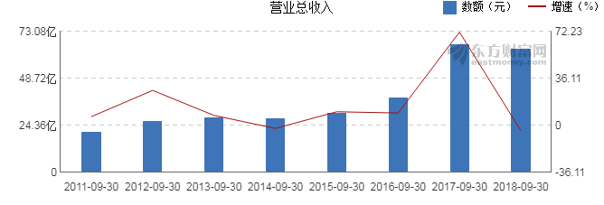 據杉杉股份2018年三季度顯示,前三季度營業收入63.8億元。歸屬于上市公司股東的凈利潤10.5億元,同比增長125.27%。基本每股收益0.939元。